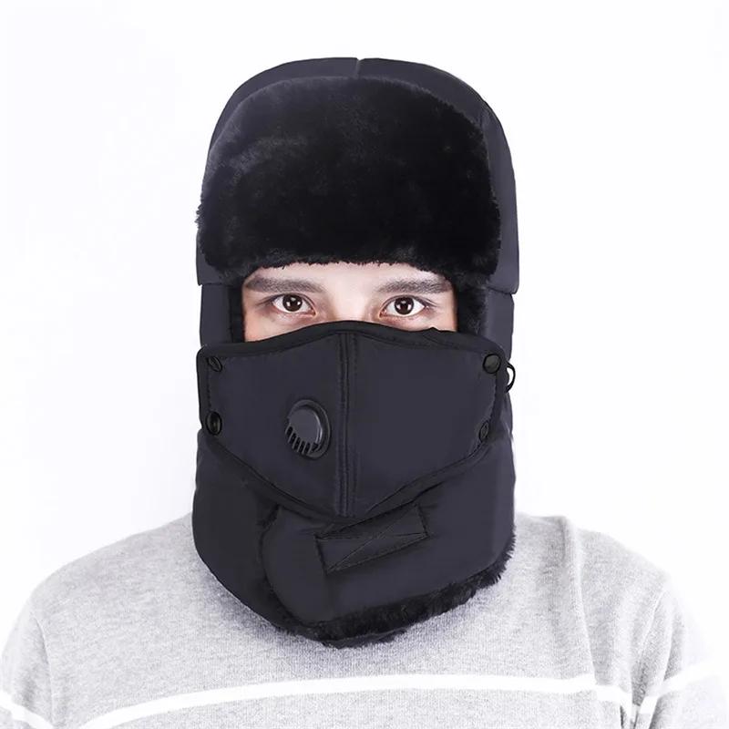 Мужская ветрозащитная теплая шапка Зимняя теплая шапка-бомбер Женская русская шапка-траппер Тепловая шапка Trooper Snow Ski Hat Кепка акриловая Lei Feng Cap чёрный