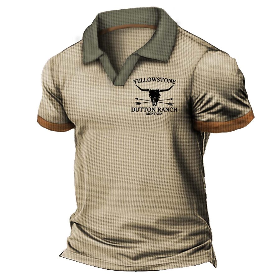 t-shirts,мужская винтажная вафельная футболка поло с цветными блоками yellowstone с коротким рукавом