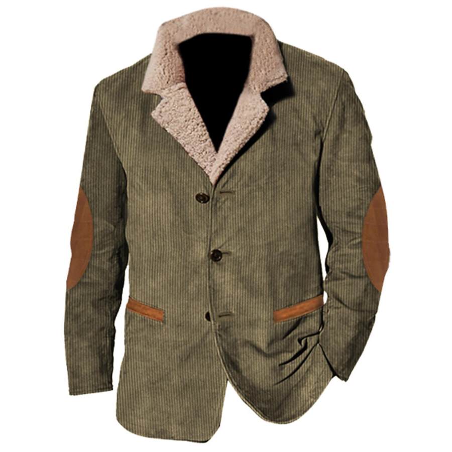 coats & jackets,мужская винтажная вельветовая теплая куртка с плюшевым воротником и цветными блоками пальто