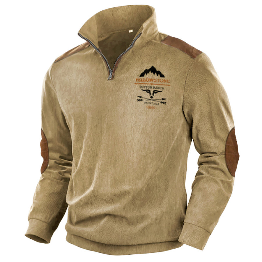 Мужская винтажная вельветовая толстовка с цветными блоками из Йеллоустона полуоткрытый воротник повседневная уличная толстовка