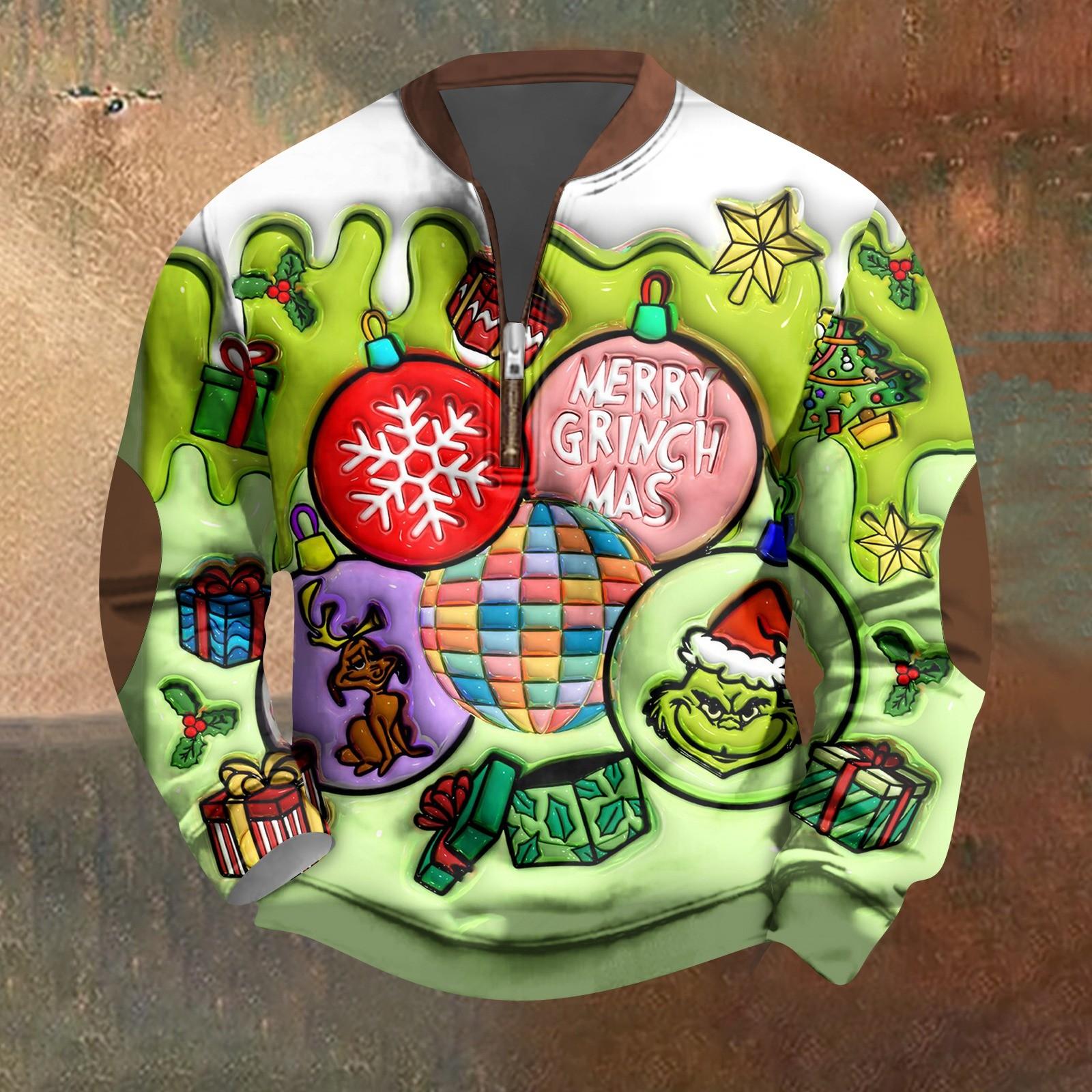 Мужская винтажная зеленая рождественская повседневная толстовка на молнии с трехмерным принтом, пуловер L армия зеленый