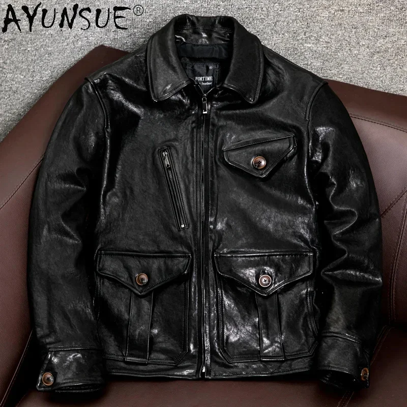 Мужская винтажная куртка AYUNSUE из 100% натуральной кожи, Весенняя коллекция 2024, повседневное пальто из настоящей овчины, брикет, 4xl, мужская одежда
