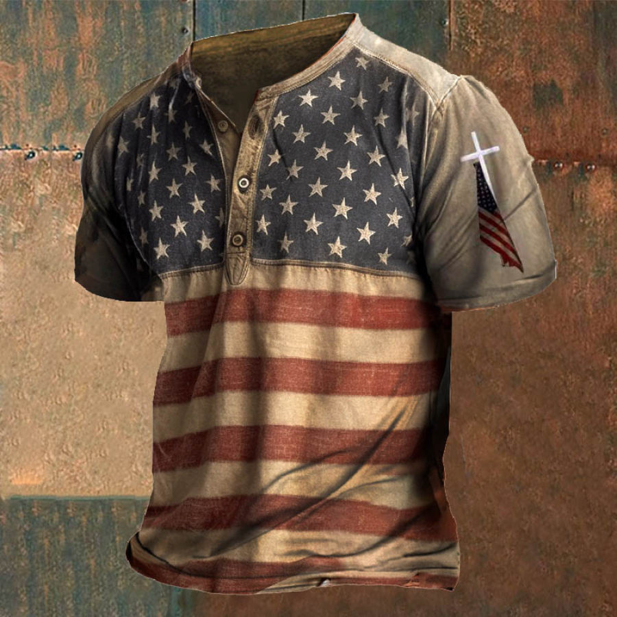 t-shirts,мужская винтажная повседневная футболка с короткими рукавами и американским флагом в патриотическом стиле хенли