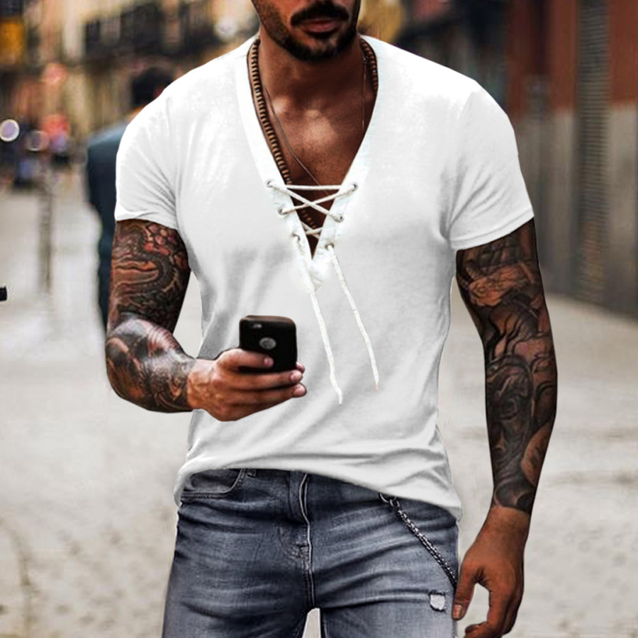 t-shirts,мужская винтажная повседневная эластичная футболка с v-образным вырезом