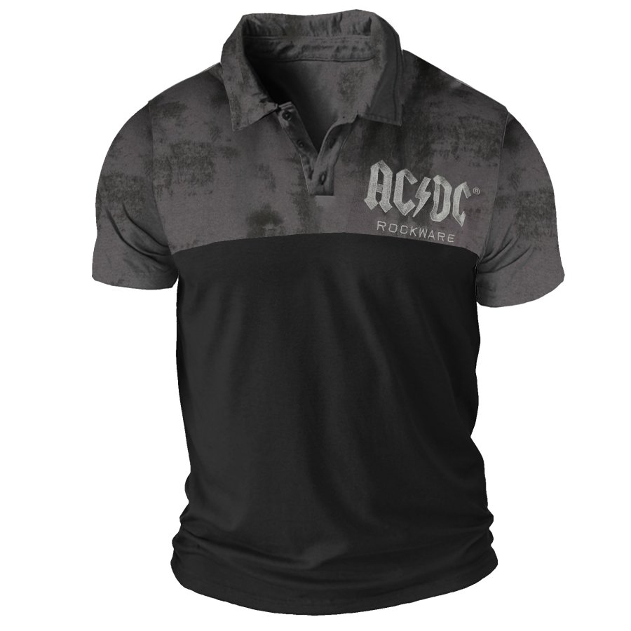 t-shirts,мужская винтажная рубашка-поло контрастного цвета с короткими рукавами и принтом рок-группы acdc hells bells