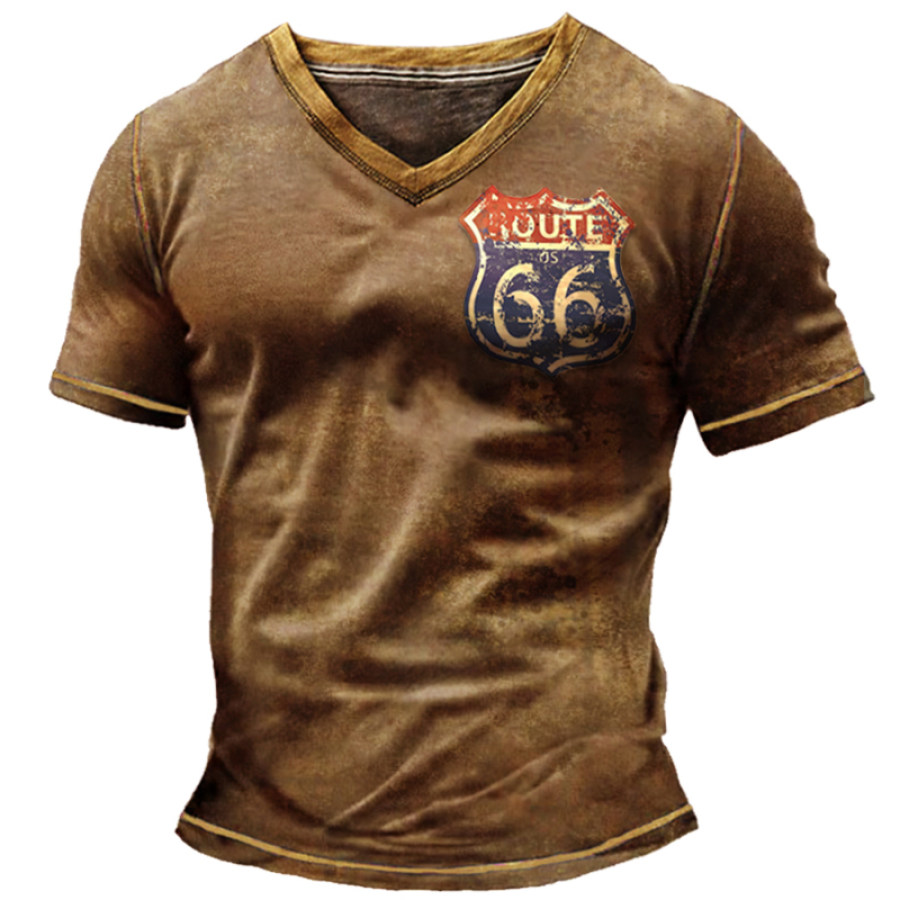 t-shirts,мужская винтажная рубашка route 66 states с рваными настенными манжетами и футболкой с v-образным вырезом контрастного цвета