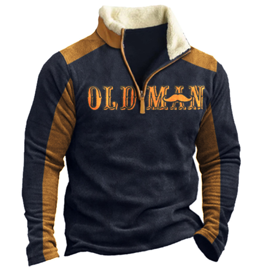 Мужская винтажная толстовка с воротником-стойкой на молнии с цветными блоками