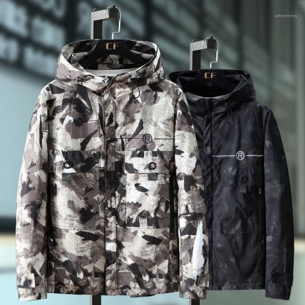 men's jackets 2021 male casual hooded clothes autumn spring sportwear 9xl jacket camouflage large size windbreaker1, Black;brown