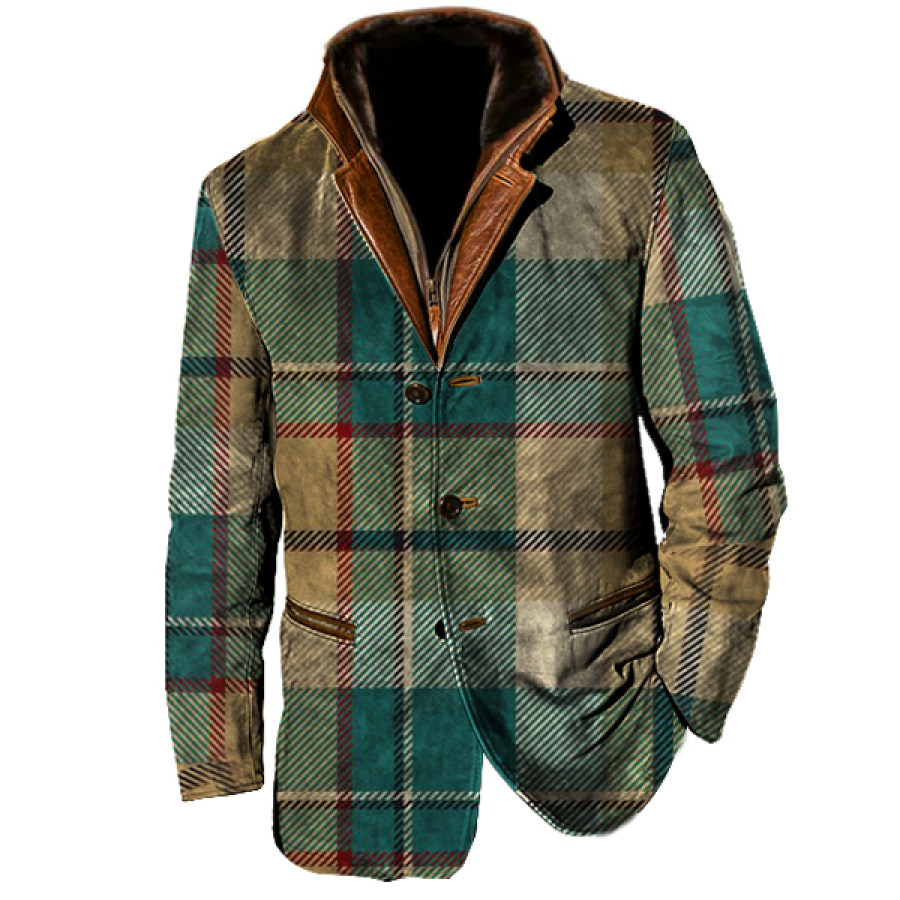 coats & jackets,мужская винтажная флисовая куртка в клетку с принтом тактическая куртка с двойным кожаным воротником контрастного цвета на флисовой подкладке