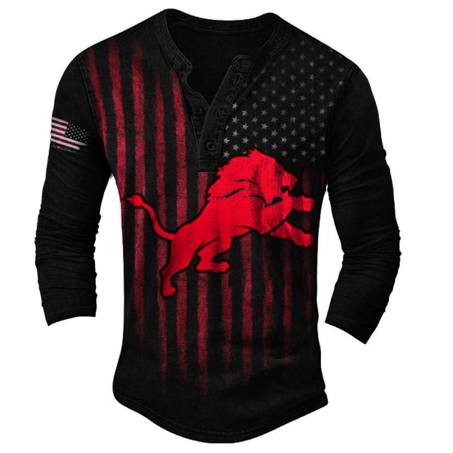 t-shirts,мужская винтажная футболка с длинным рукавом и воротником-хенли detroit lions с принтом американского флага