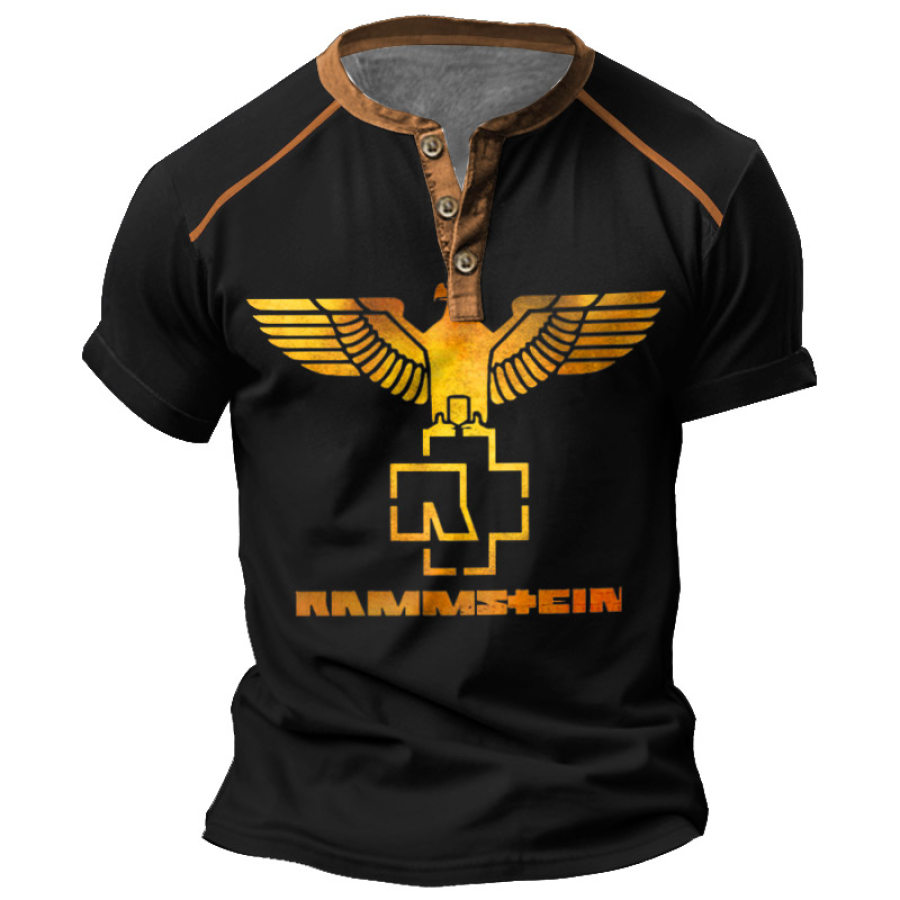 Мужская винтажная футболка с короткими рукавами и цветным принтом Rammstein Rock Band Henley