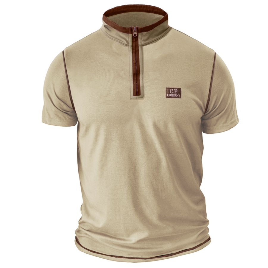 t-shirts,мужская винтажная футболка с коротким рукавом и воротником-стойкой cp company в стиле пэчворк