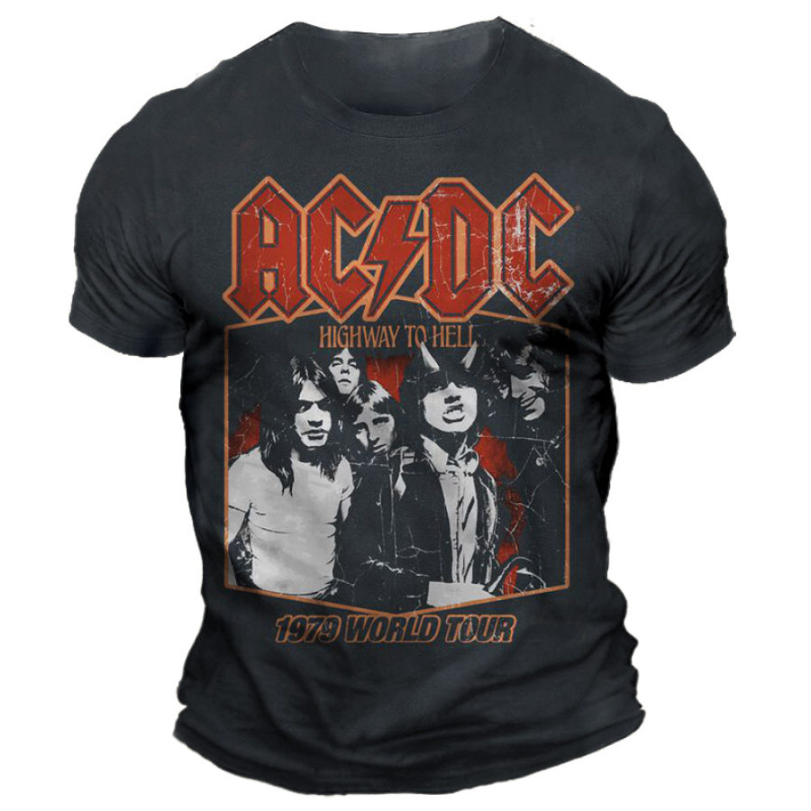 t-shirts,мужская винтажная футболка с круглым вырезом с короткими рукавами и принтом acdc highway to hell 1979 world tour rock band