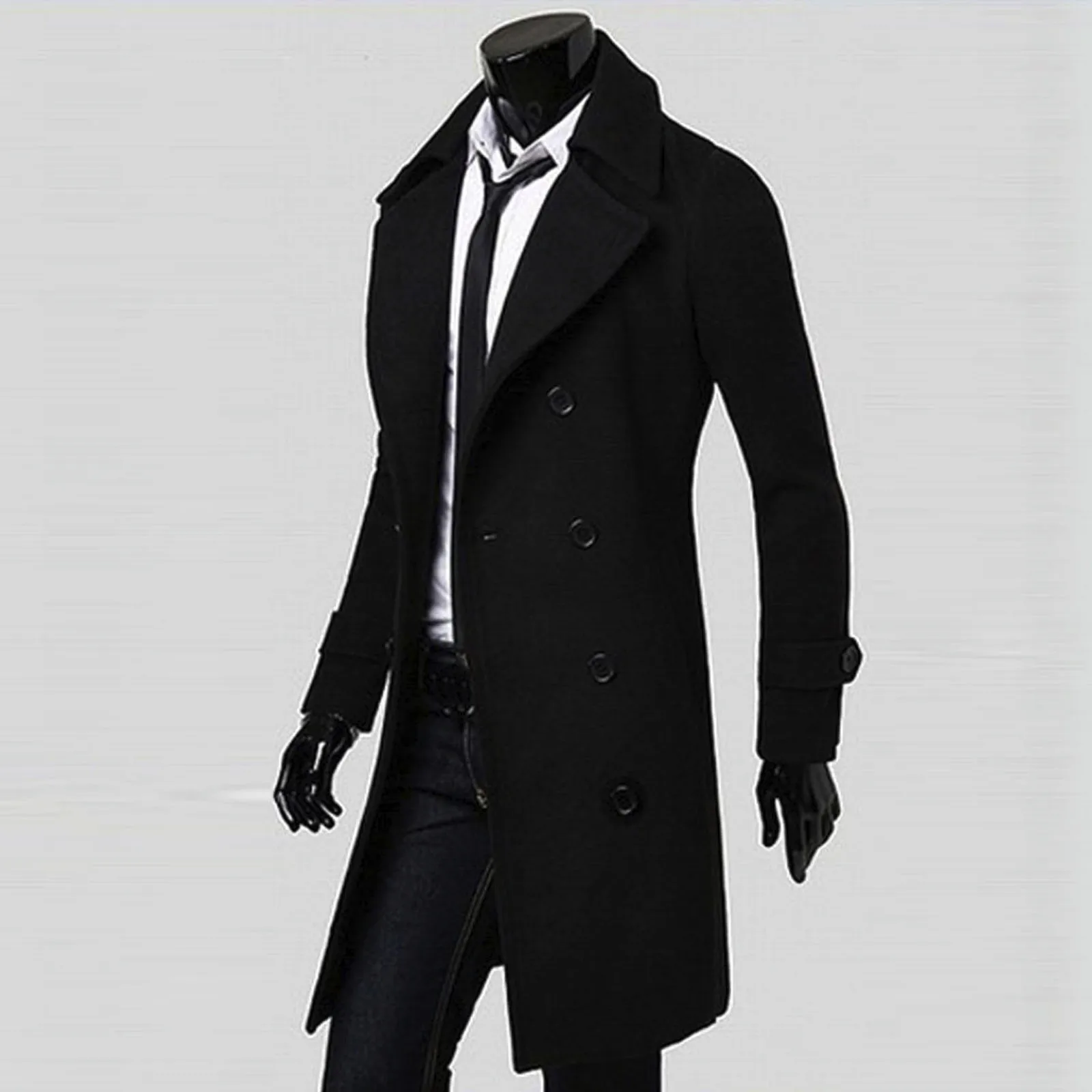 Мужская двубортная куртка, однотонный тренчкот для осени,