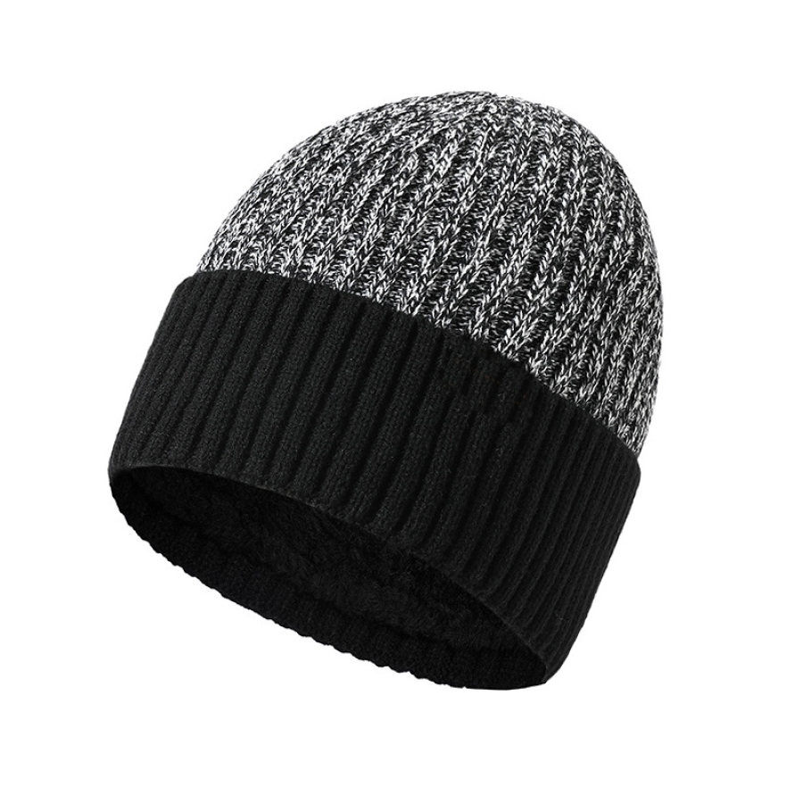 Мужская двухслойная шерстяная шапка плюс флисовая теплая вязаная шапка