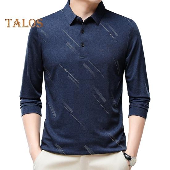 Мужская деловая рубашка, приталенная футболка с длинным рукавом и лацканами, однотонный топ для мужчин среднего и пожилого возраста, повседневная рабочая одежда XL темно-синий