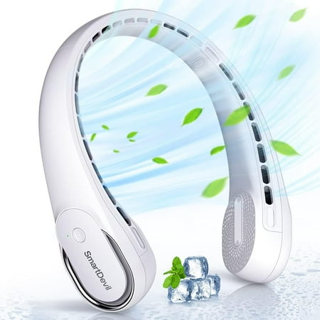 Neck Fan 4000mAh Rechargeable Portable Neck Fan Bladeless Neck Fan Personal Wearable Fan with Upgraded Air Volume 3 Speeds 360° Cooling for Travel Outdoor Working White