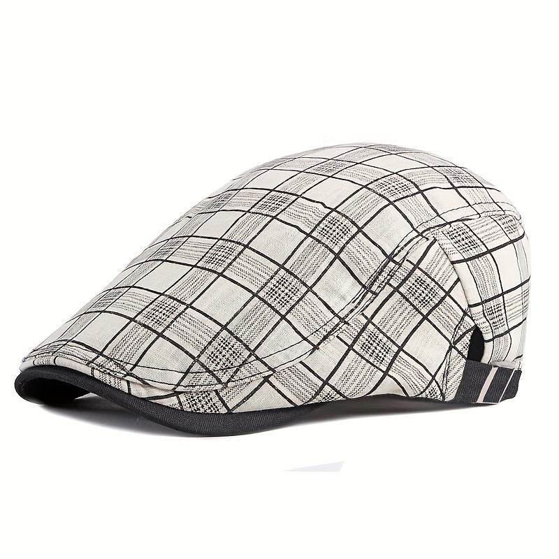 Мужская и женская клетчатая квадратная кепка Newsboy, берет, весенне-летняя шляпа Duckbyl, винтажная британская солнцезащитная кепка с дышащей передней частью, регулируемый размер бежевый