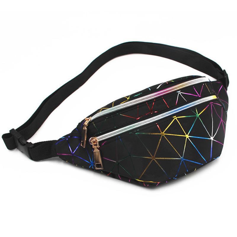 Мужская и женская поясная сумка Ромбовидная красочная лазерная спортивная многослойная уличная поясная сумка из искусственной кожи Яркая кожаная поясная сумка Мужская и женская нагрудная сумка чёрный