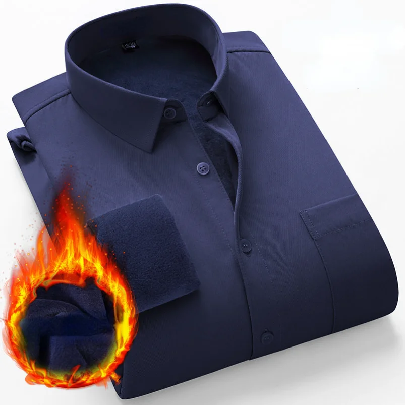 Мужская зимняя Флисовая теплая Классическая рубашка с длинным рукавом, не требует глажки