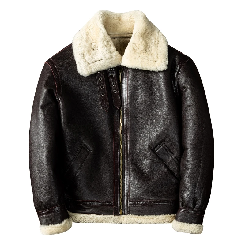 Мужская зимняя куртка в стиле милитари, темно-коричневая теплая куртка-бомбер из натуральной овчины, пальто из натуральной кожи B3