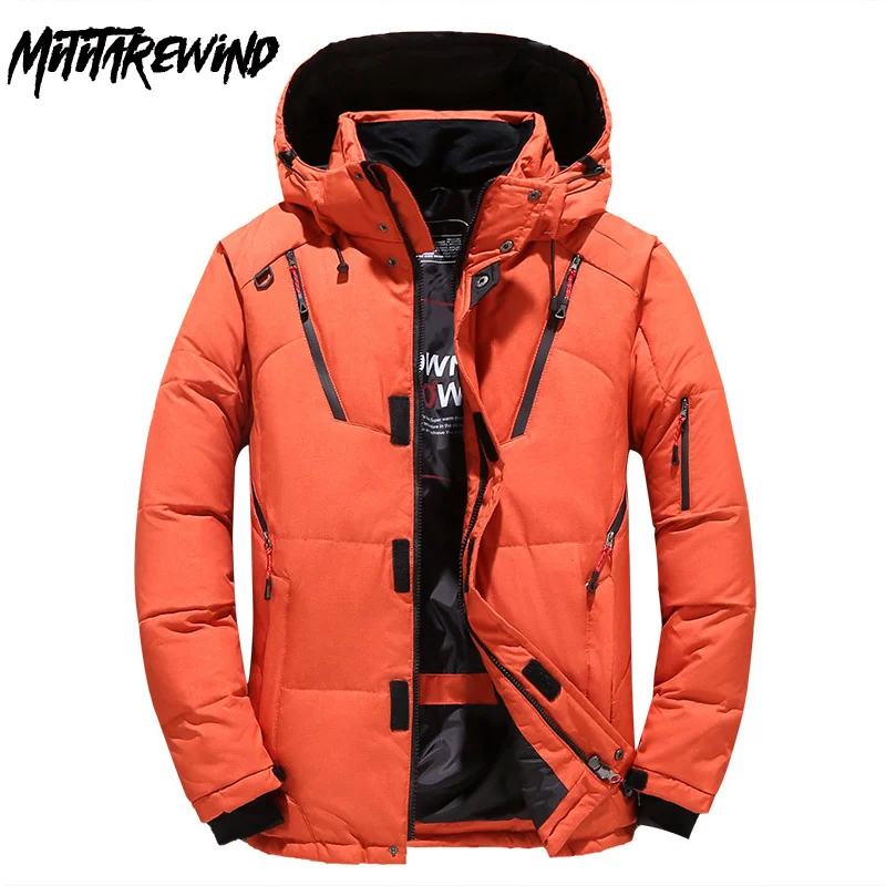 Мужская зимняя куртка на белом утином пуху с капюшоном, до-30 градусов