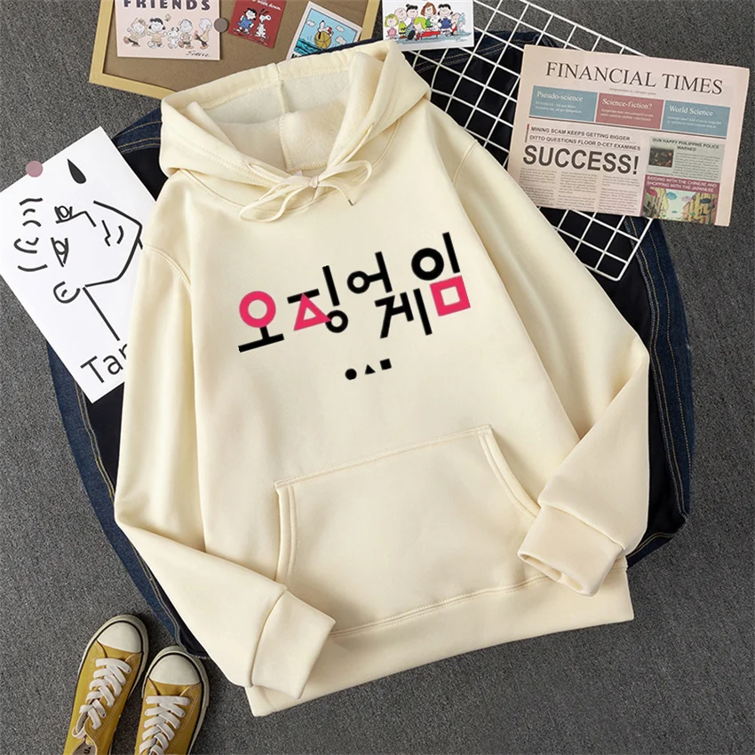 Мужская зимняя теплая толстовка в стиле унисекс с рисунком корейского кальмара