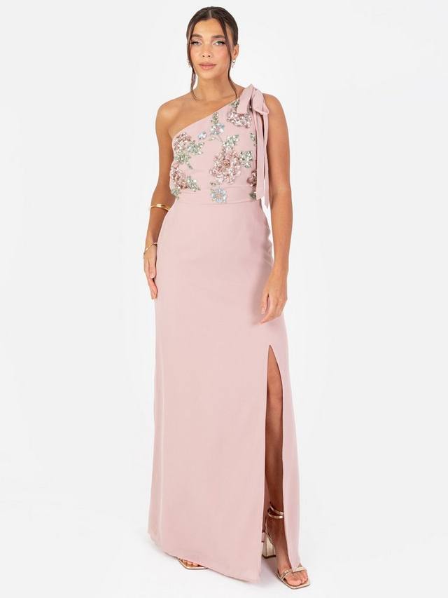 Асимметричное макси-платье с цветочным рисунком Maya Deluxe, цвет Frosted Pink/Multi