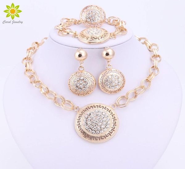 women wedding gold plated round design necklace set fine jewelry sets african beads bridal ring bracelet earrings accessories6566475, Slivery;golden