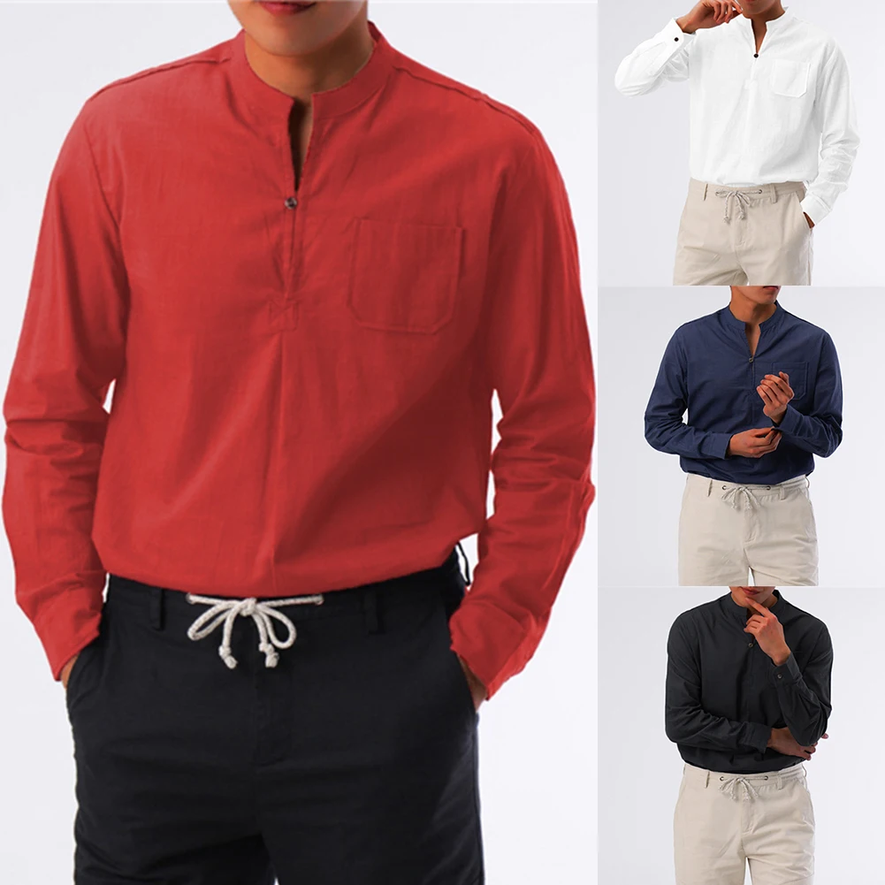 Мужская классическая рубашка из смеси хлопка, Повседневная стильная уличная рубашка с длинными рукавами, Осень-зима