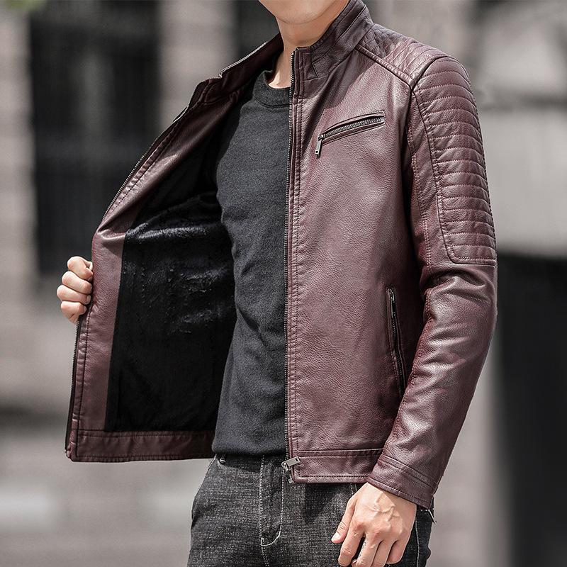 Мужская кожаная куртка весна-осень, новая модная мотоциклетная куртка с воротником-стойкой, мужская тонкая куртка из искусственной кожи в корейском стиле зеленого цвета 4XL