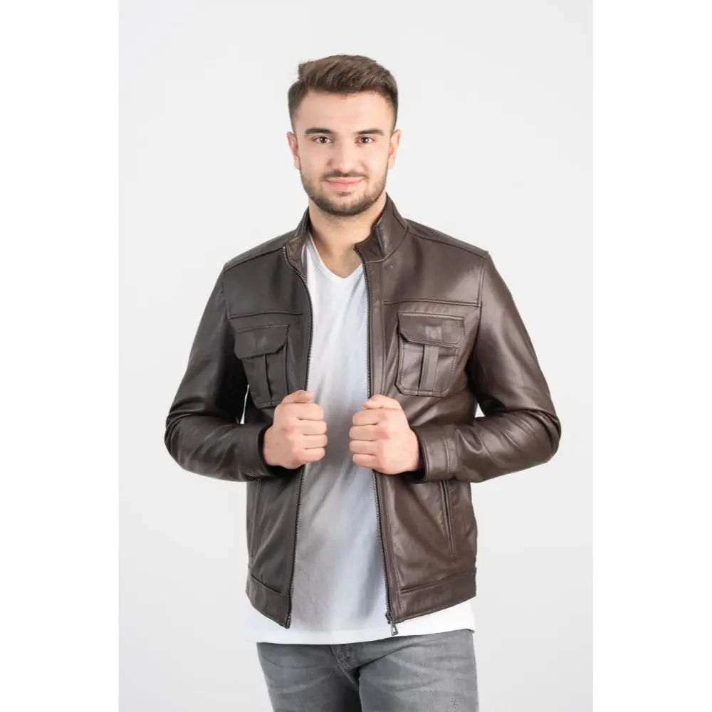 Мужская кожаная куртка из натуральной овечьей кожи, винтажная официальная Повседневная зимняя куртка из натуральной кожи
