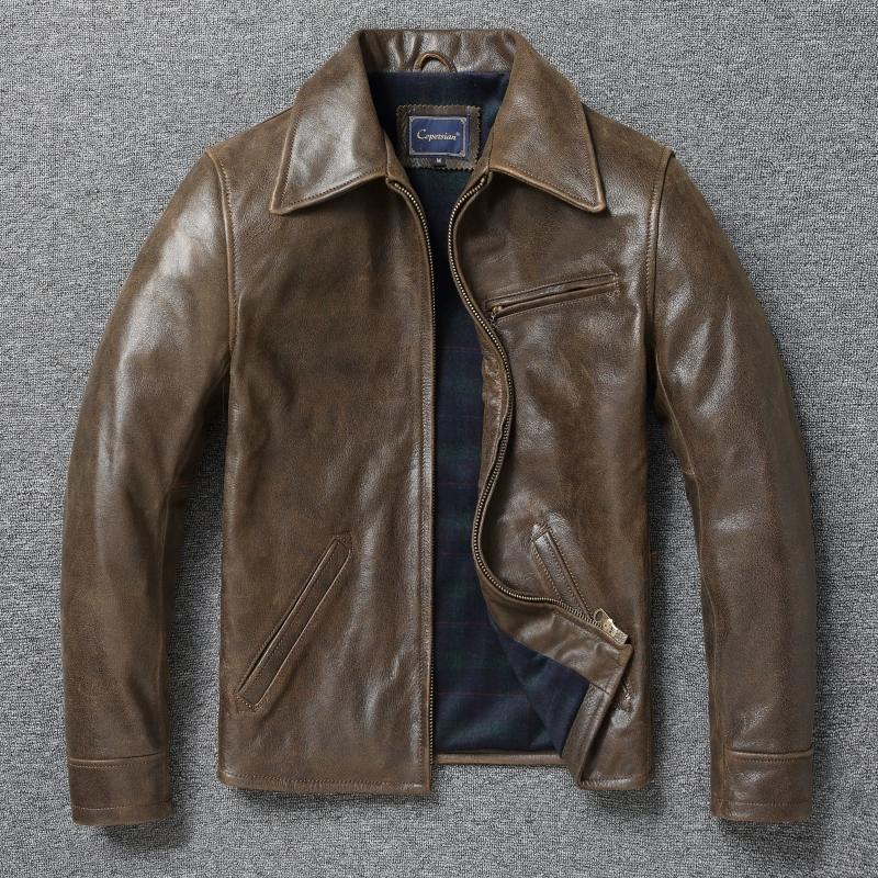 Мужская кожаная куртка китайского размера, классическая, 1930 года, из непокрытой потрескавшейся козьей кожи, мягкая, тонкая, весна-осень 6XL
