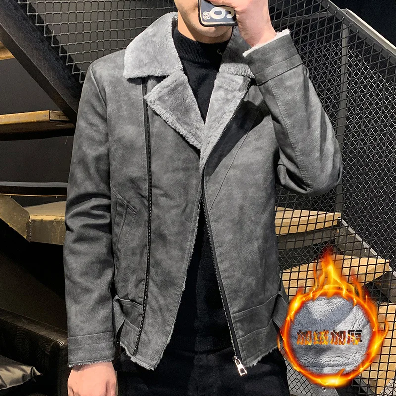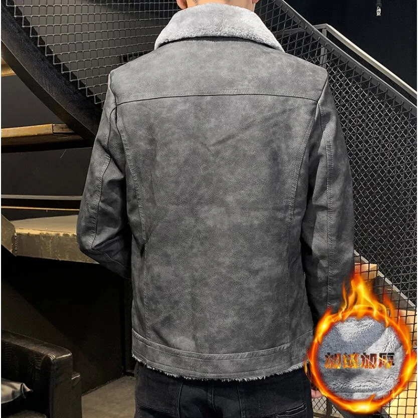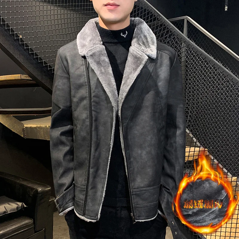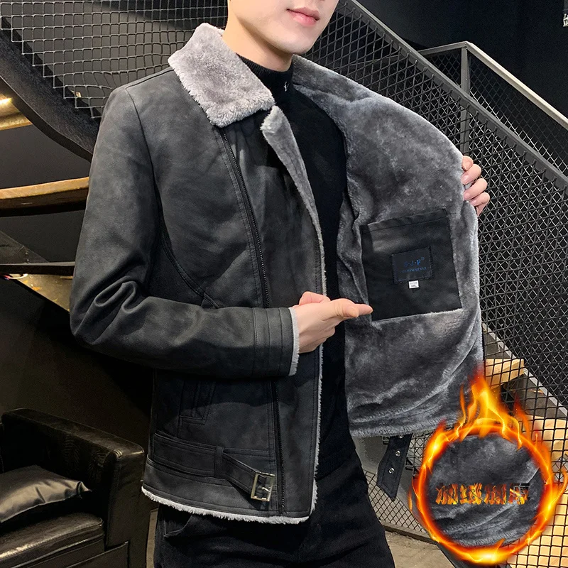 Мужская кожаная куртка на флисе, облегающая ветрозащитная куртка с лацканами, мотоциклетная кожаная куртка, зима 2023
