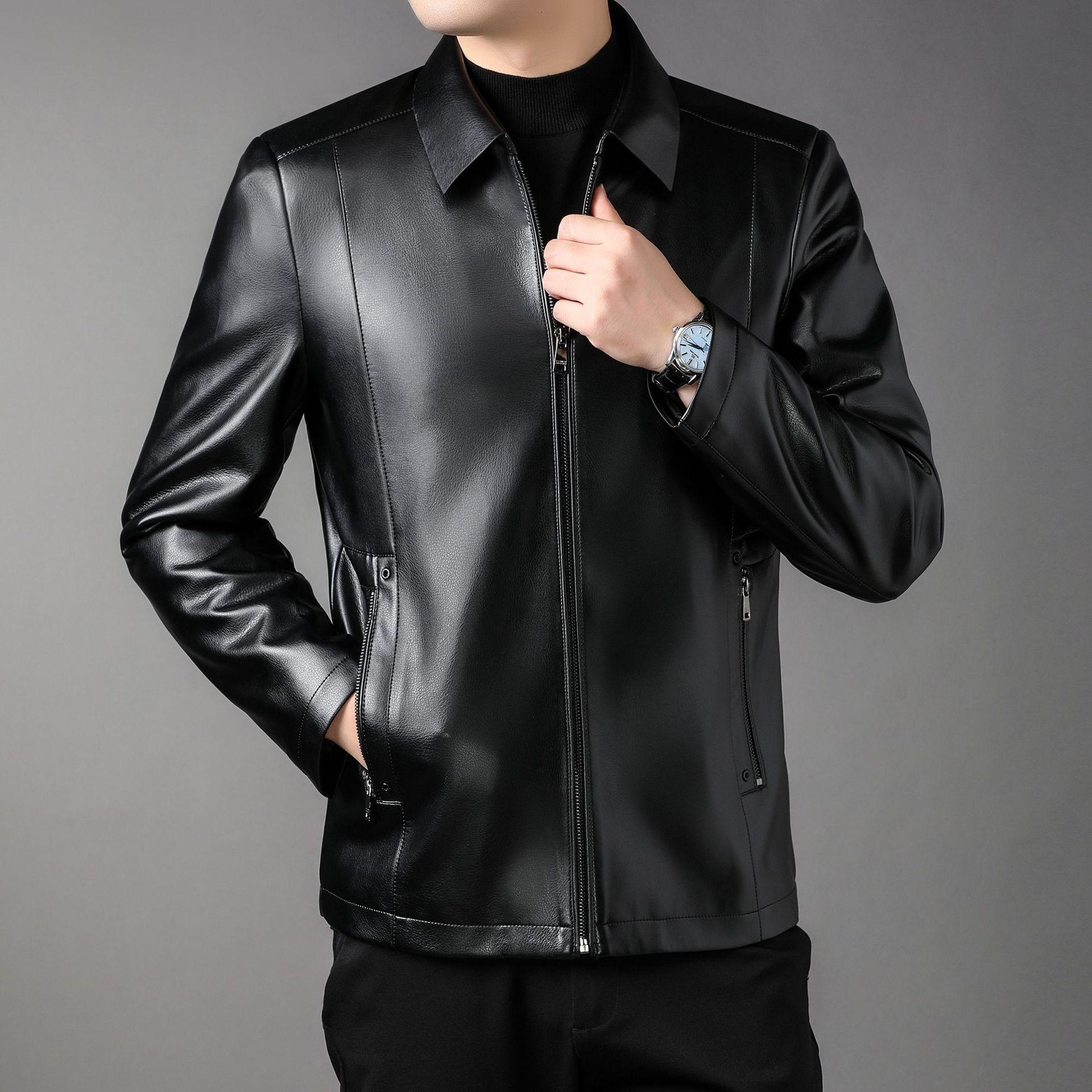 Мужская кожаная куртка осень-зима новая средняя деловая повседневная простая короткая куртка с лацканами из мягкой кожи мужская одежда 195