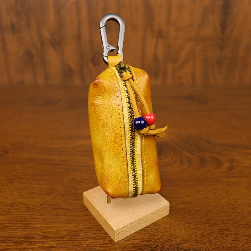 Мужская кожаная сумка для ключей, первый слой коровьей кожи, женская сумка для ключей, многофункциональная винтажная сумка для ключей из кожи растительного дубления жёлтый