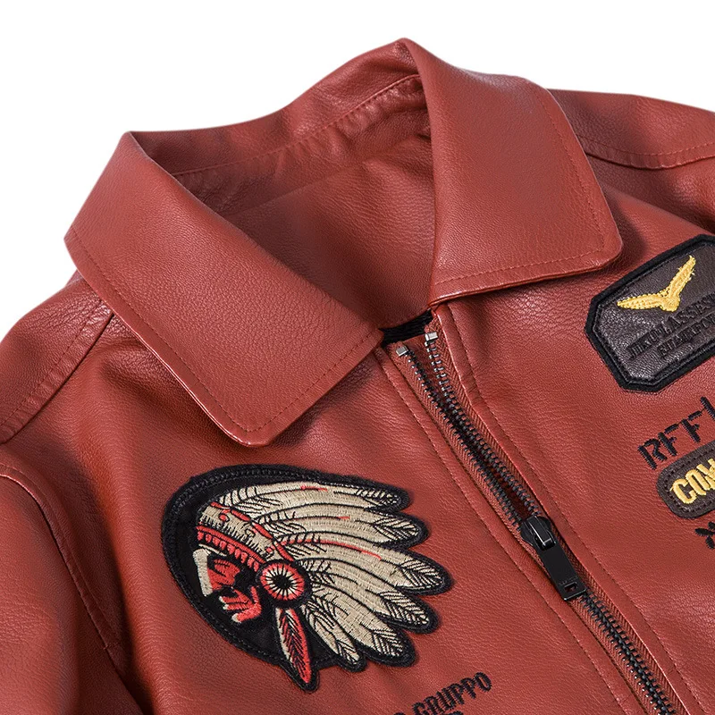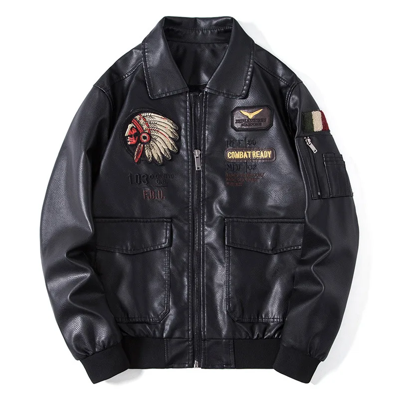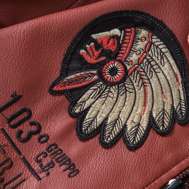 Мужская короткая куртка из ПУ кожи, с воротником-стойкой и вышивкой