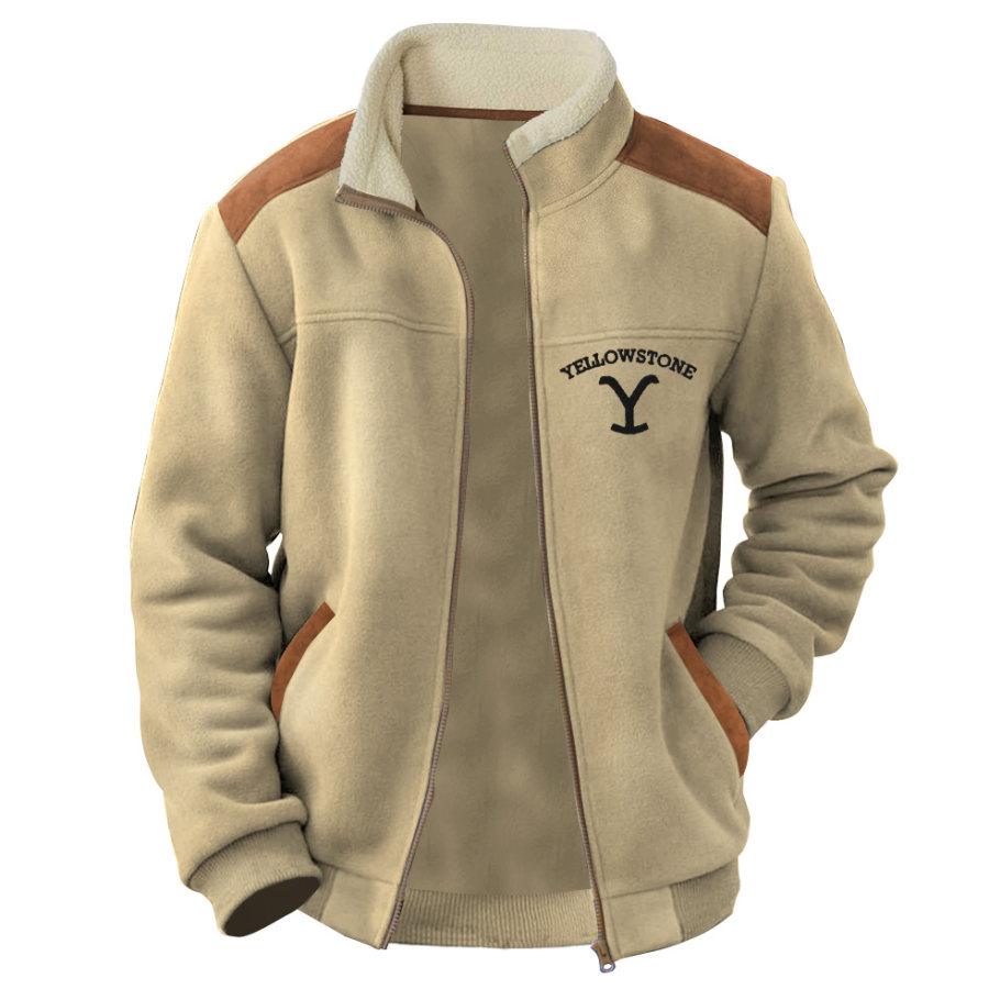 Мужская куртка Йеллоустонский флисовый плюшевый воротник винтажное пальто с толстыми лацканами и цветными блоками