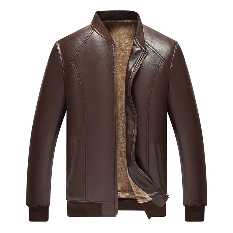 Мужская куртка-бомбер из искусственной кожи на флисовой подкладке, с воротником-стойкой, на молнии