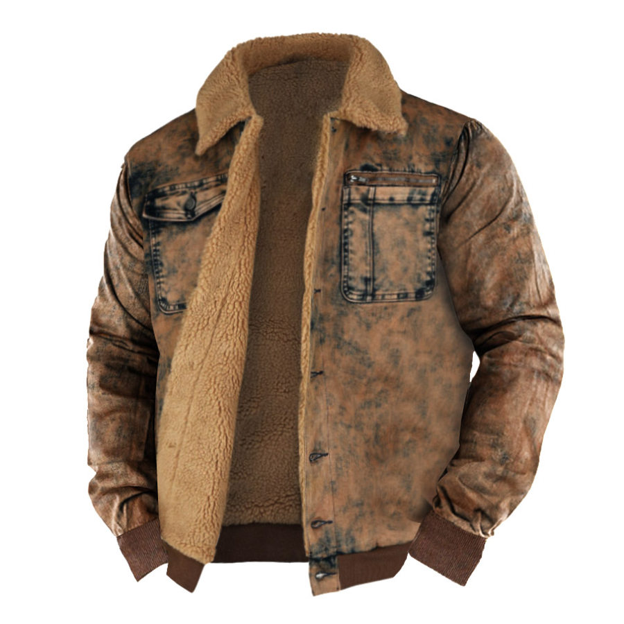 coats & jackets,мужская куртка винтажная с потертостями и карманами теплое толстое флисовое пальто
