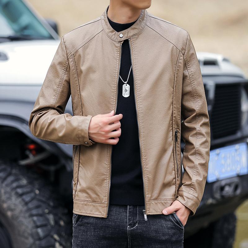 Мужская куртка из искусственной кожи, осенне-зимняя кожаная куртка в корейском стиле с воротником-стойкой, модная одежда для мотоциклистов 4XL