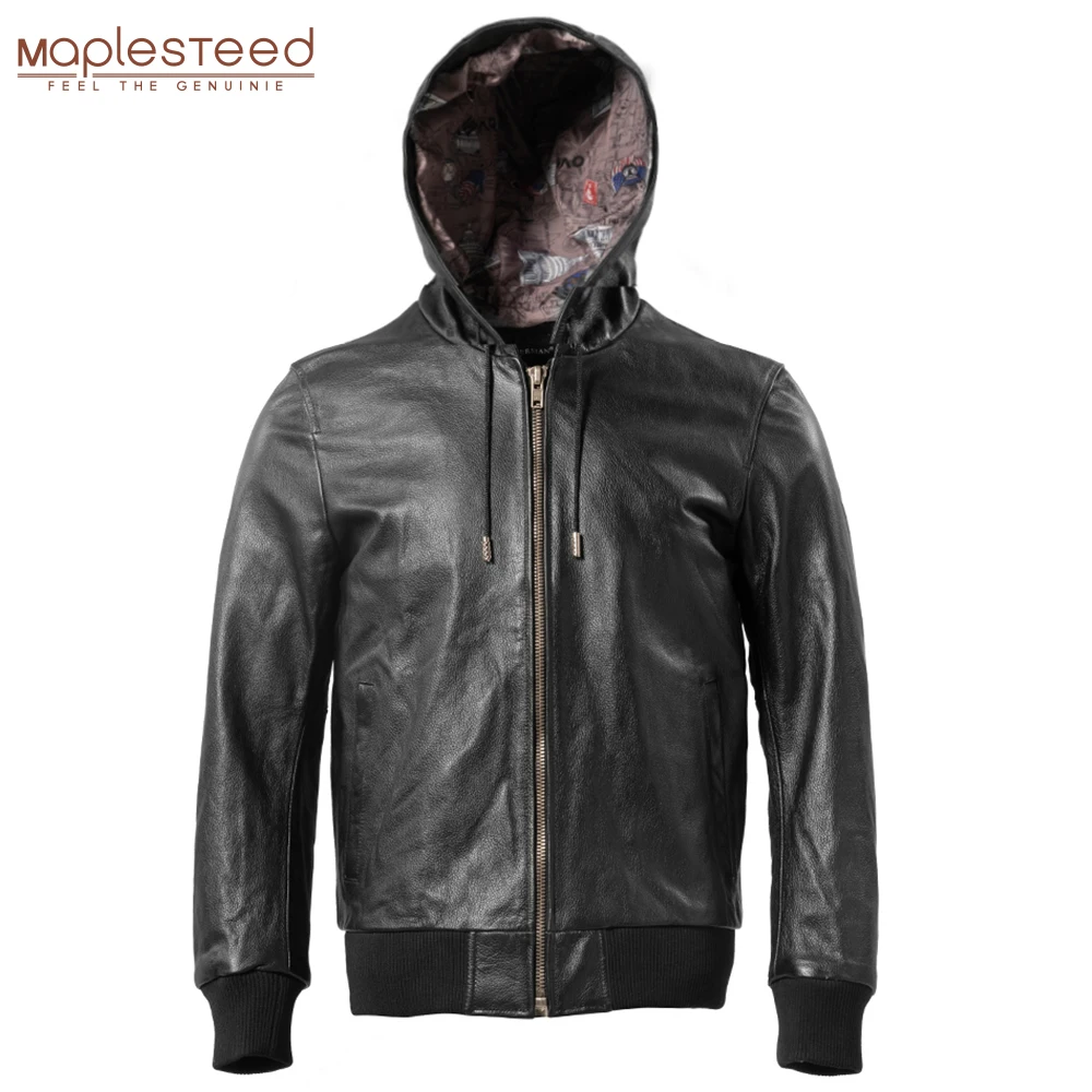 Мужская куртка из мягкой натуральной воловьей кожи, с капюшоном, M618