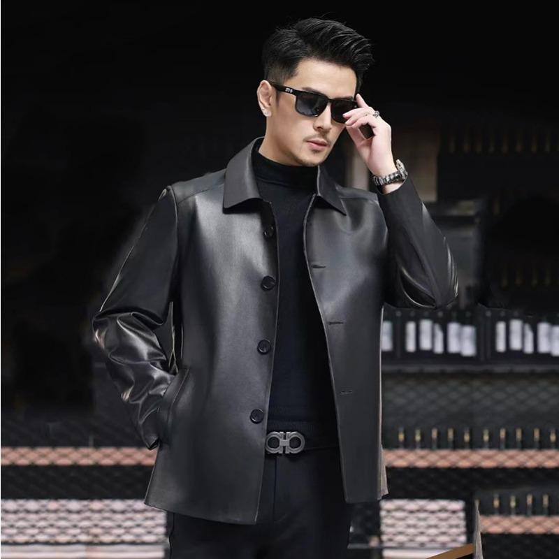 Мужская куртка из натуральной кожи осень-зима новая однобортная куртка средней длины из овчины для людей среднего и пожилого возраста 5XL