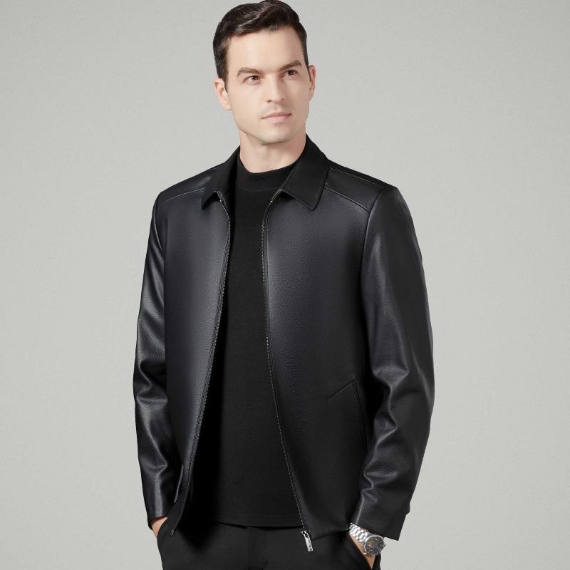 Мужская куртка из овчины, осенняя, новая, для среднего возраста, деловая, повседневная, из мягкой кожи, простая куртка с лацканами 195