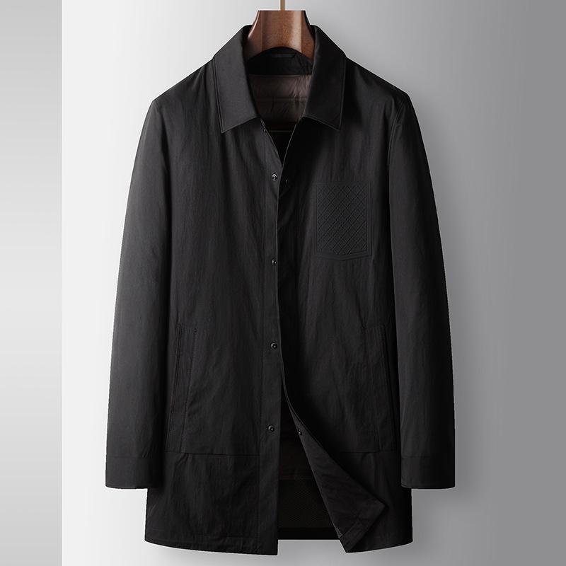 Мужская куртка-пуховик осенне-зимняя с лацканами, вариант пальто-тренча с пуховой подкладкой, теплая молодежная деловая утолщенная куртка 195 чёрный