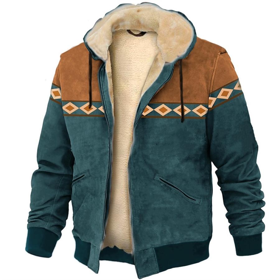 coats & jackets,мужская куртка с капюшоном в винтажном стиле вестерн в этническом стиле ацтеков плюс флисовое теплое толстое пальто бирюзового цвета