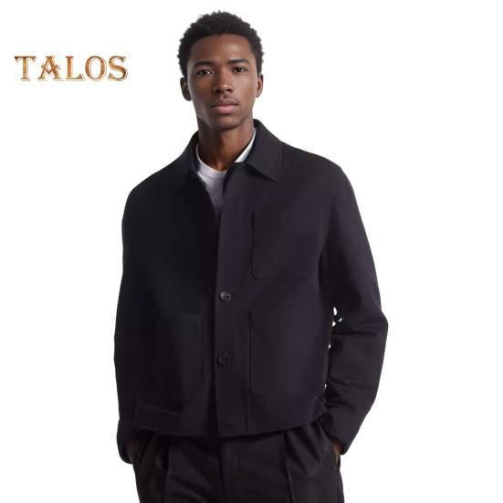 Мужская куртка с лацканами, длинный рукав, однобортное пальто среднего возраста с накладным карманом, однотонная повседневная куртка, верхняя одежда M темно-синий