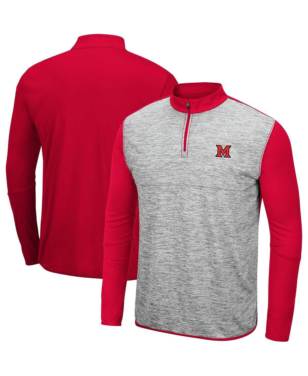 Мужская куртка с молнией на четверть, Heather Grey, Red Miami University RedHawks Prospect Colosseum