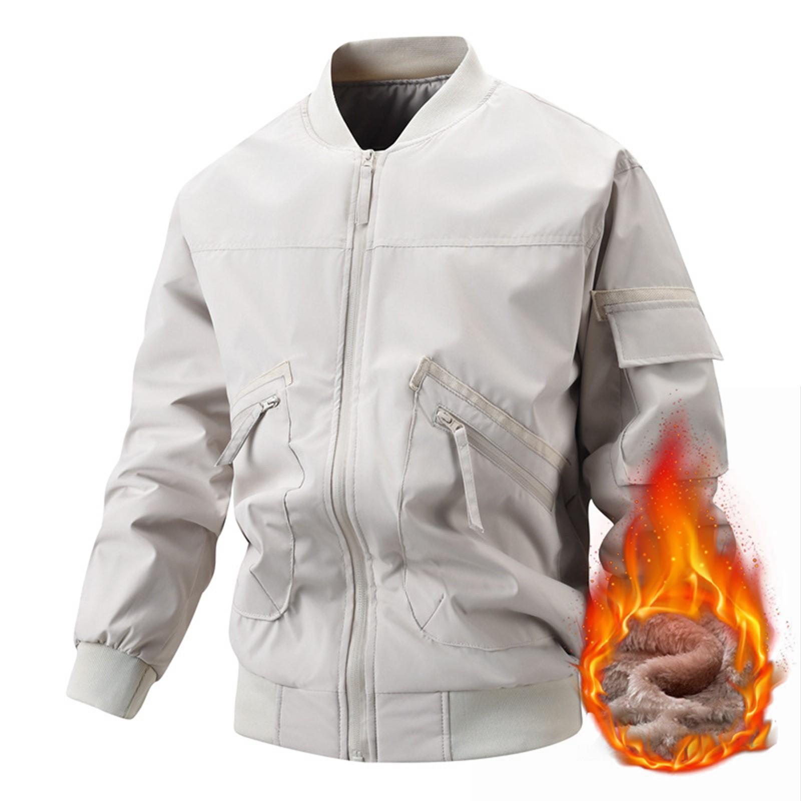 Мужская куртка с флисом, повседневная мужская куртка с бейсбольным воротником, на подкладке из хлопка XL хаки