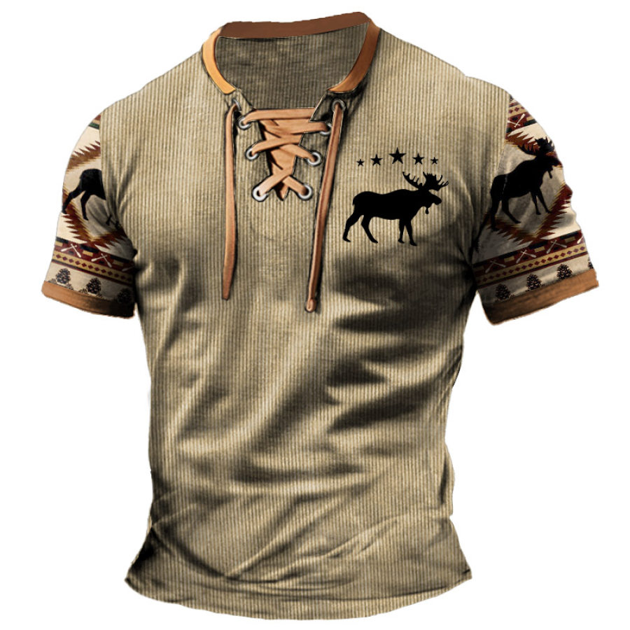 t-shirts,мужская легкая вельветовая винтажная футболка с короткими рукавами в рубчик moose creek в этническом стиле на шнуровке